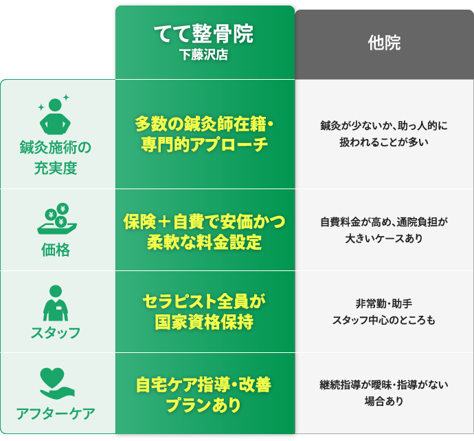 国家資格を持つ鍼灸師・柔道整復師が在籍し、あなたの症状に最適な施術を行います。