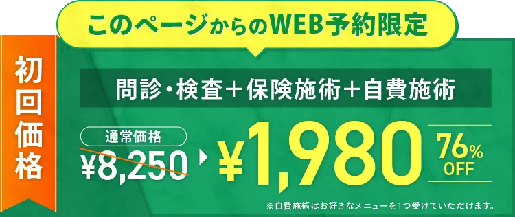 ※初回限定特典を適用される場合は、ご予約時もしくはご来院時にスタッフまでお声がけください。