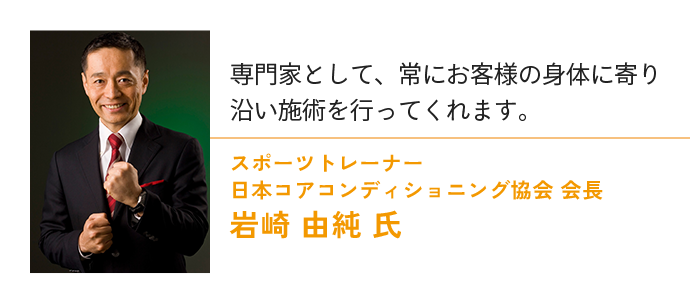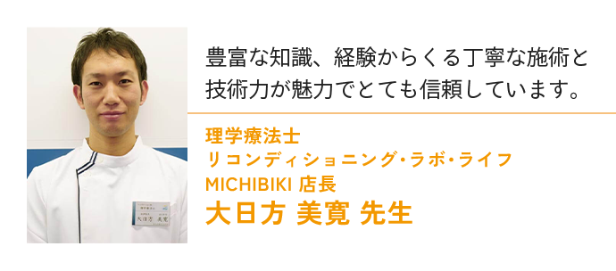 故障している箇所を治していただけるだけでなく、全体的な足や身体の疲労感も取っていただき、身体が動きやすくなりました。 おかげさまで大会で良い記録を残せるようになりました!