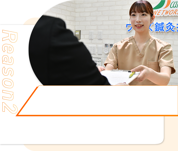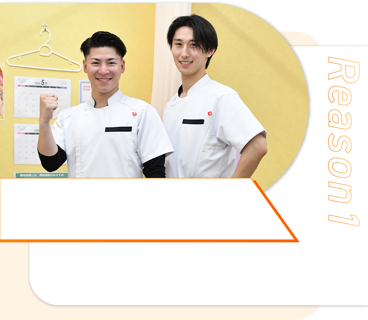 国家資格を持つ鍼灸師・柔道整復師が在籍し、あなたの症状に最適な施術を行います。